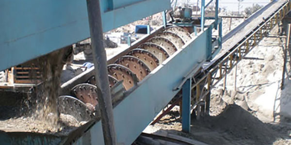 該設(shè)備廣泛用于各種易洗和難洗礦石的洗礦。礦石中含泥在20%以上則對碎礦機(jī)及溜槽產(chǎn)生堵塞,該設(shè)備可使含泥在20%以上的礦石,在洗石機(jī)中螺旋攪拌、擦洗達(dá)到礦石與泥分離的目的,洗凈后的礦石從排料口排出,泥水從尾礦端排出。該設(shè)備與圓筒洗礦機(jī)配合,對處理難洗礦石是目前比較有效的設(shè)備。