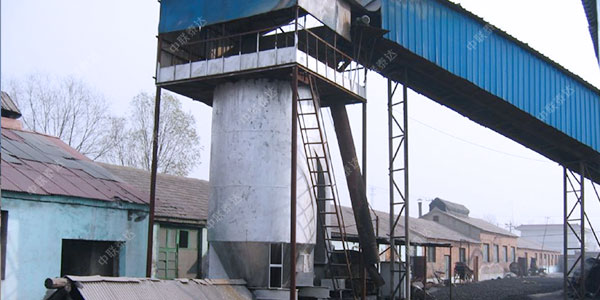 成型后的“水球”由皮帶機(jī)輸送到爐頂,由布料裝置均勻分布到爐頂全截面。在重力作用下向下流動(dòng),途徑烘干機(jī)內(nèi)的“角盒”換熱并翻身,濕球團(tuán)在其運(yùn)行軌道上一邊靠重力緩慢下 移一邊與強(qiáng)風(fēng)進(jìn)行熱交換。蒸發(fā)出的水分由強(qiáng)風(fēng)帶走。經(jīng)兩小時(shí)左右的蒸發(fā)過程達(dá)到充分干燥。球團(tuán)流至出料口排出烘干機(jī)。